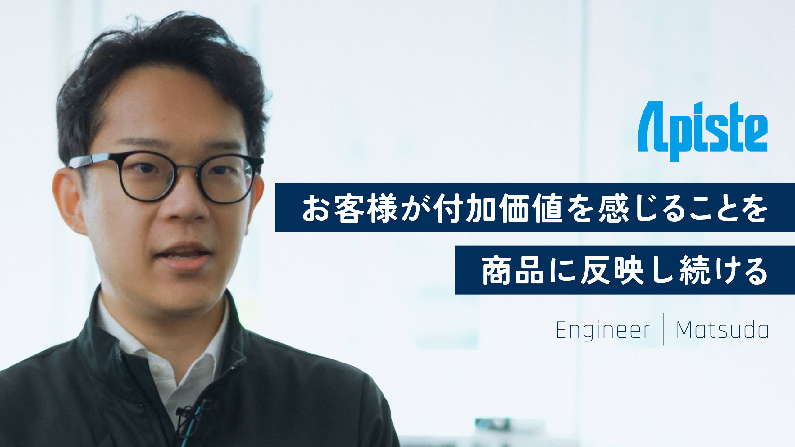 「アピステでは『最小の資本と人で最大の付加価値を上げる』という経営理念があります。今回、商品の仕様検討から開発、生産と担当しましたが、常に判断基準が明確です。迷ったときは相談することもありますが、『お客さまの価値』を基準として説明してもらえるので、わかりやすく、とても勉強になります」。