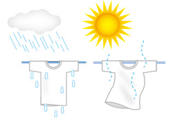 湿った物体から水分が蒸発すると乾燥します。空気中の水蒸気量が少なければ少ないほど、水分は蒸発しやすく、物体は乾燥しやすくなります。