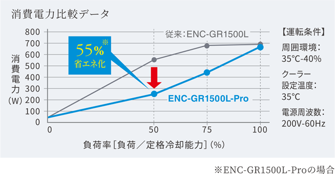 従来比、最大55%の省エネ化で電気コストを大幅に抑えます