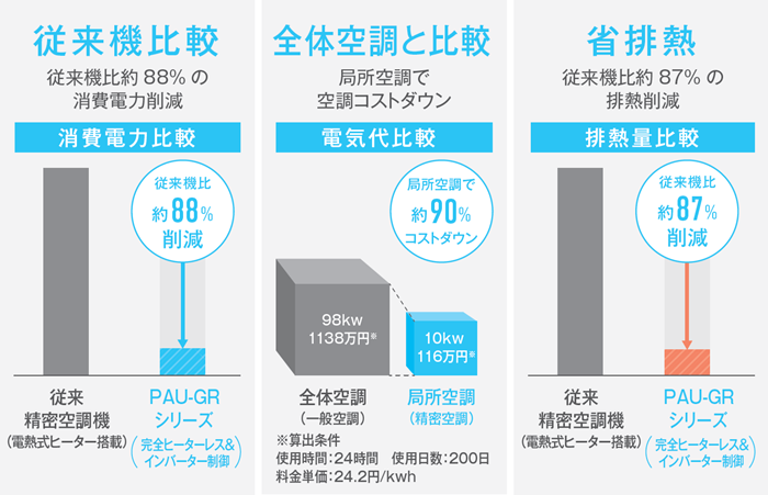 PAU-GRシリーズは超省エネ×省排熱で更なる省エネを実現します。