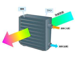 空冷式熱交換器(液体―気体)の構造・特徴について説明しています。